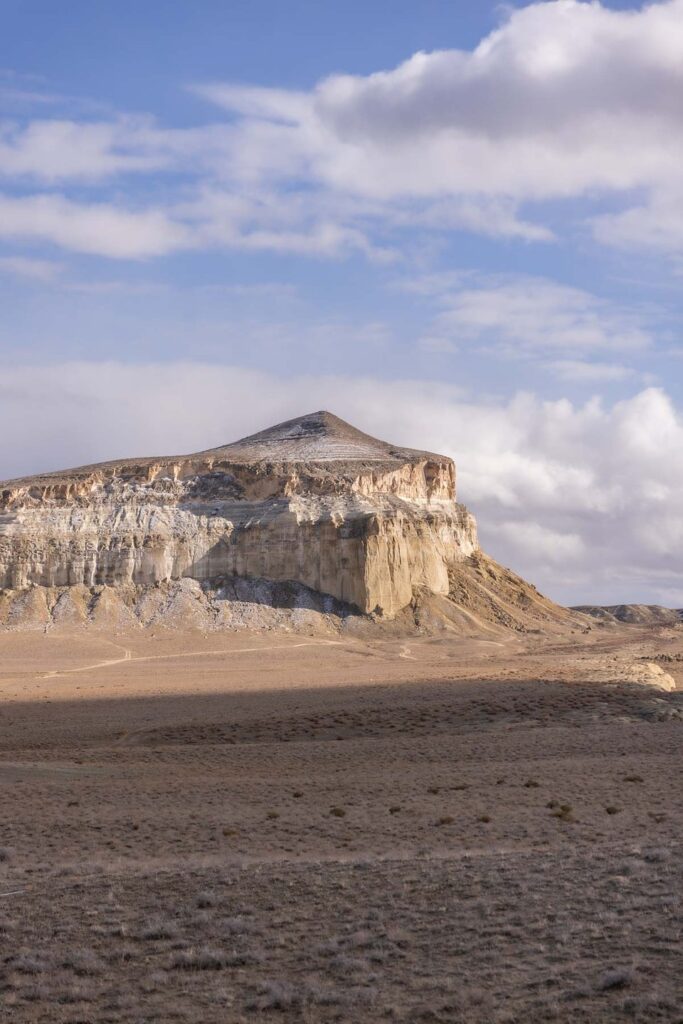 Finally, you’ll visit Mount Bokty, the iconic table-shaped mountain whose flat summit and ever-shifting colors make it one of Mangystau’s most photographed landmarks. Depending on the time of day, Bokty glows pink, gold, or deep red, and you’ll want to just sit and watch the mountain change with the light before it’s time to go.